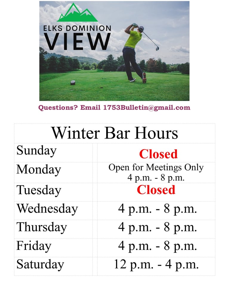 Elks Dominion View (our bar) is now open to the public!